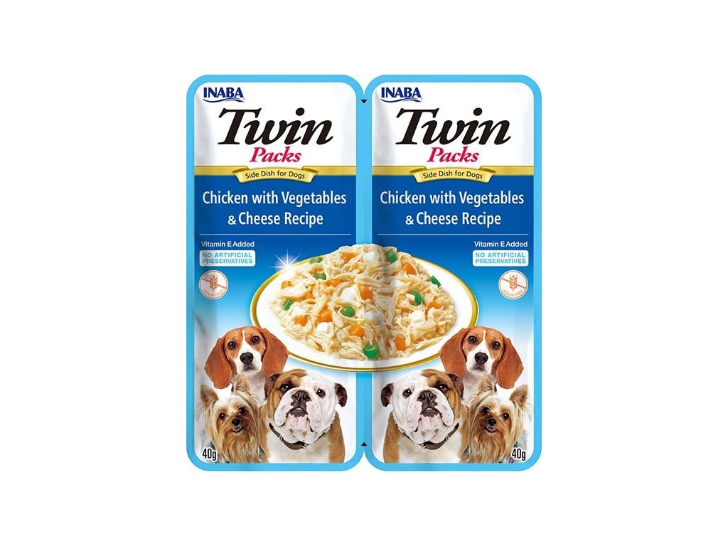 Kapsička Churu Dog Twin Packs - kuře, zelenina a sýr ve vývaruNeodolatelná kapsička pro psy v praktickém dvojbalení plná masa a lahodného kuřecího vývaru. Potěšte své chlupaté přátelé dvojitým balením: praktickou kapsičkou s jednou porcí, aby si vaši mazlíci mohli vychutnat vždy čerstvý plnohodnotný pokrm. Vyrobeno z kuřecího masa a zeleniny s přídavkem sýru. Kapsičky jsou bez obilovin, konzervačních látek a umělých barviv a jsou nízkokalorické. (40 g x 2).