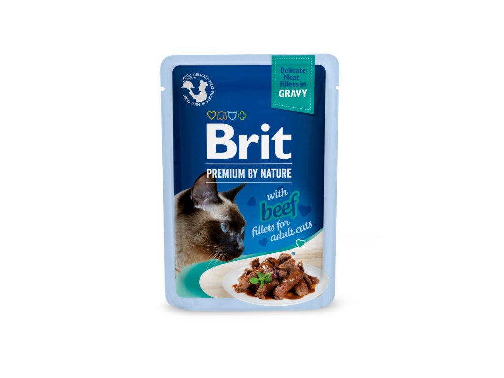 Kapsička Brit Premium Cat Delicate Fillets in Gravy with Beef 85 gMasové kapsičky pro dospělé kočky s hovězím masem ve šťávě. Delikátní masové filetky jsou trhané a tak poskytují kočce zážitek jako z její přirozené potravy. Kapsičky jsou bez umělých barviv a konzervantů a jsou připravovány speciální technologií vaření v páře, pro zachování originální chuti a vůně masa, takže si kapsičky jistě oblíbí i ti nejmlsnější mazlíčci. Určeno pro dospělé kočky.