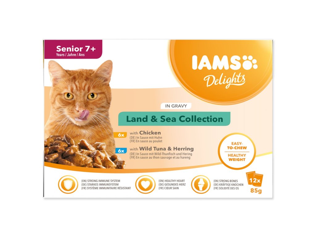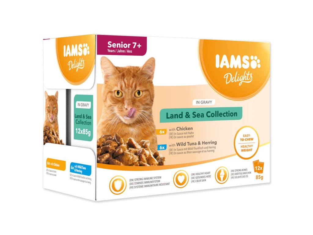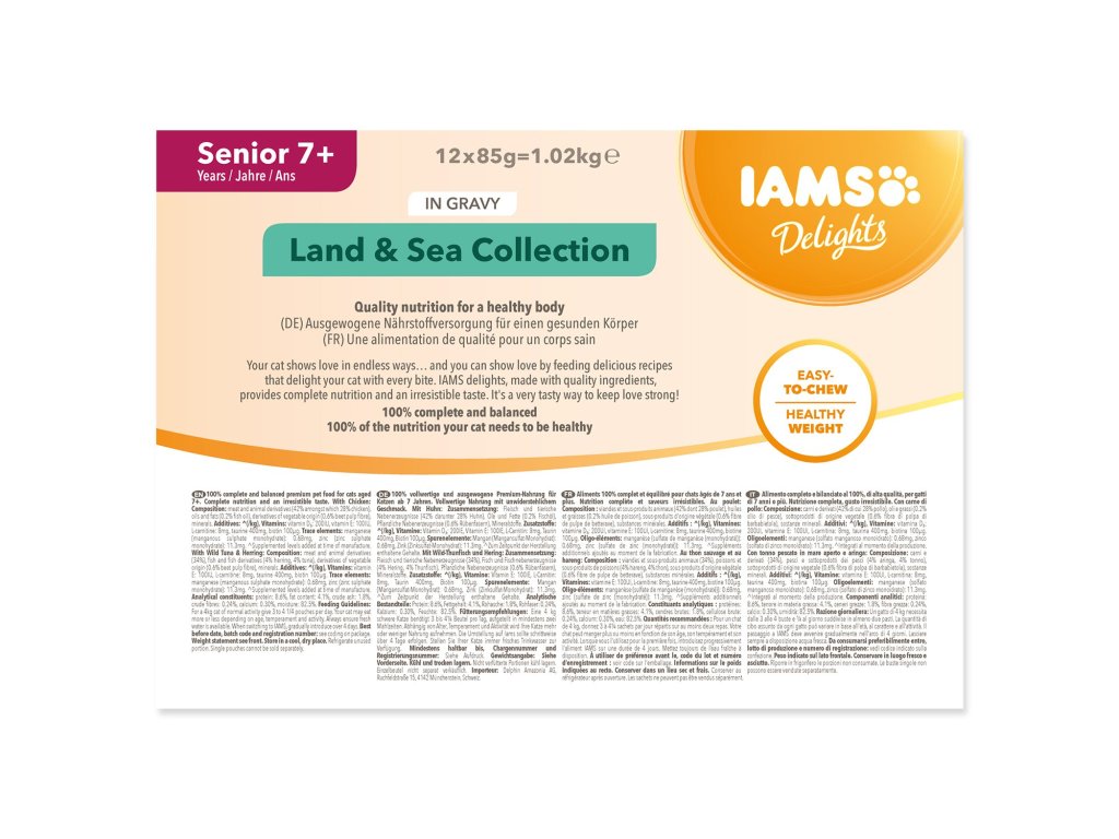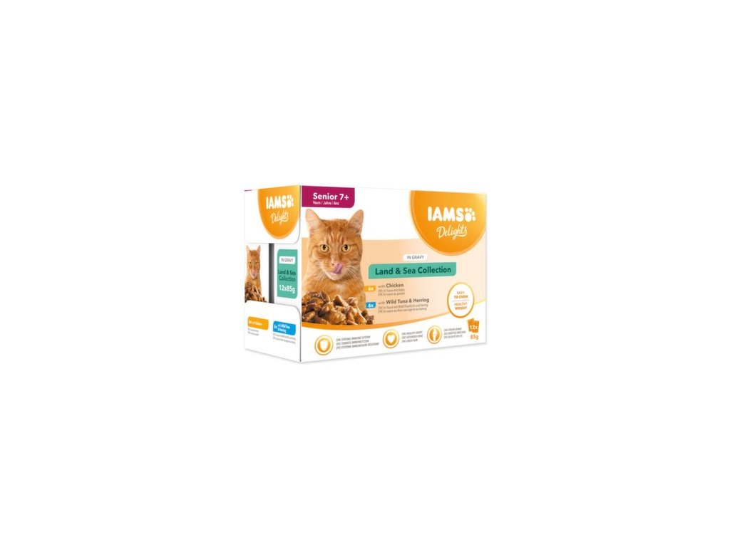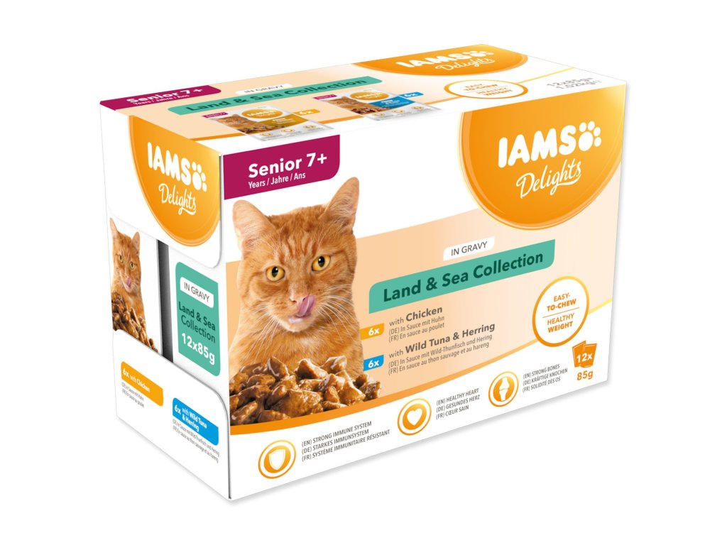 Kapsička IAMS Delights Senior mořské a suchozemské maso v omáčce 1020g (12x85g)