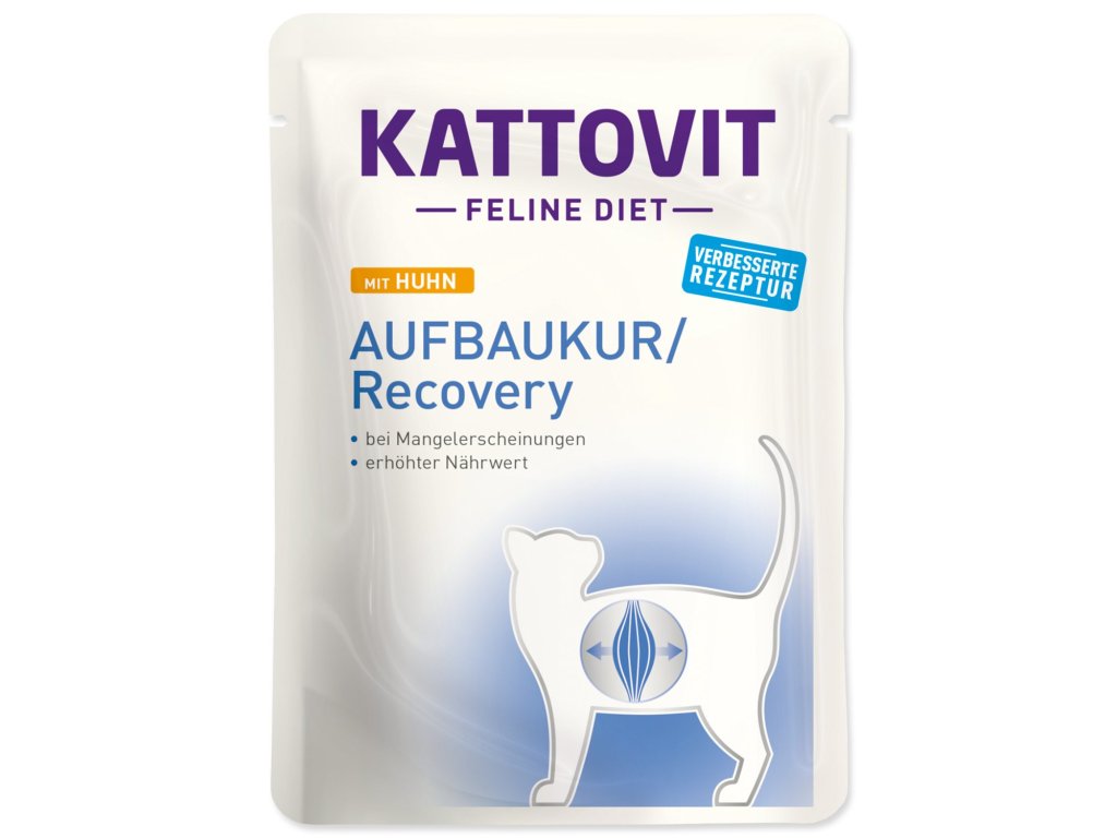 Dietetické krmivo obsahuje snadno stravitelné suroviny (např. kuřecí), které přispívají k optimálnímu příjmu živin. Kromě toho vyniká krmivo pro kočky Kattovit extra lahodnou chutí, díky čemuž je dobře akceptováno také mnoha chlupáči se sníženou chutí k jídlu. Jemným kouskům v delikátní omáčce odolá málokterá kočka.