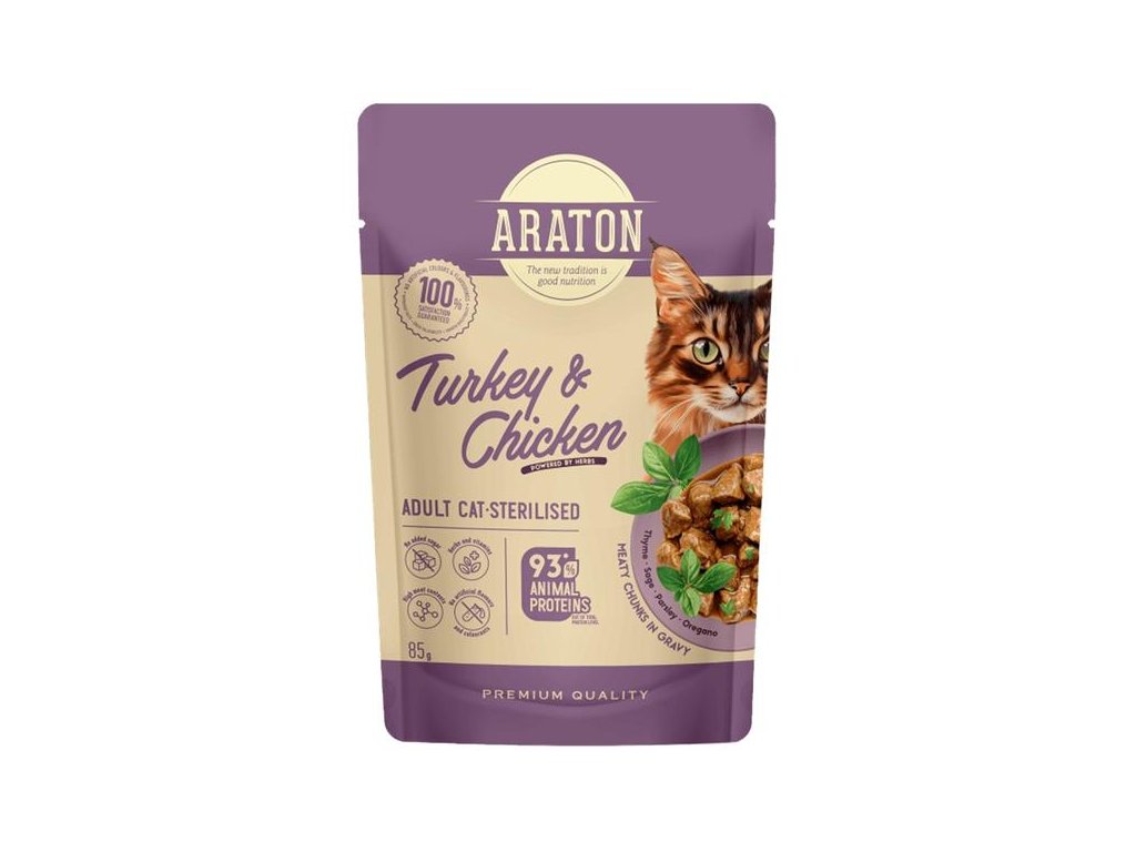 Kapsička pro kastrované kočky Araton Sterilised Turkey/Chicken, 85 g