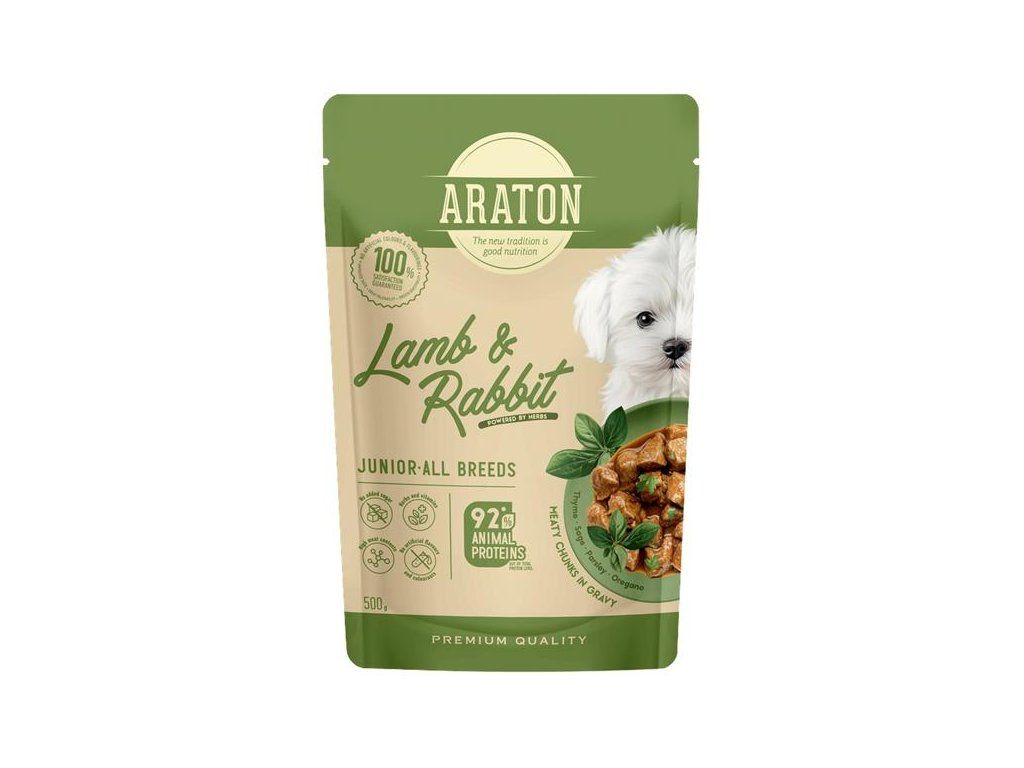 Receptury ARATON vznikají ve spolupráci s odborníky na výživu zvířat a jsou určeny pro štěňata všech plemen od 1 do 12 měsíců věku, kdy je každý krok růstu klíčový. Krmivo je vhodné samostatně nebo v kombinaci se suchým krmivem.