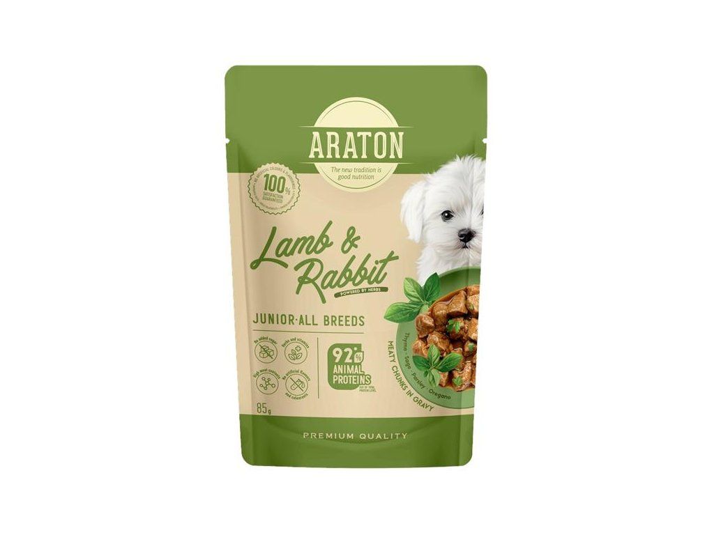 Receptury ARATON vznikají ve spolupráci s odborníky na výživu zvířat a jsou určeny pro štěňata všech plemen od 1 do 12 měsíců věku, kdy je každý krok růstu klíčový. Krmivo je vhodné samostatně nebo v kombinaci se suchým krmivem.