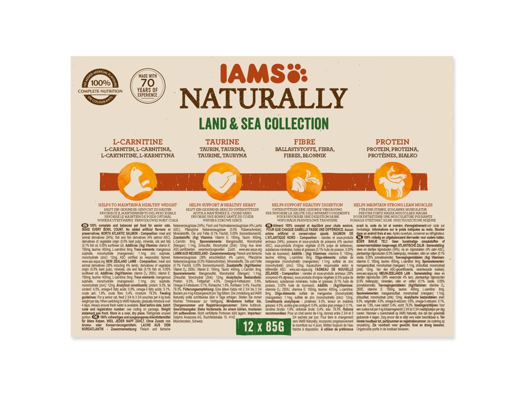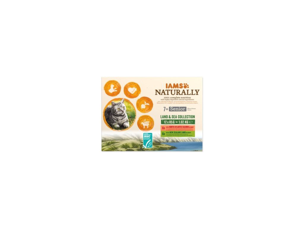 Kapsička IAMS Naturally Senior mořské a suchozemské maso v omáčce multipack 1020g (12x85g)