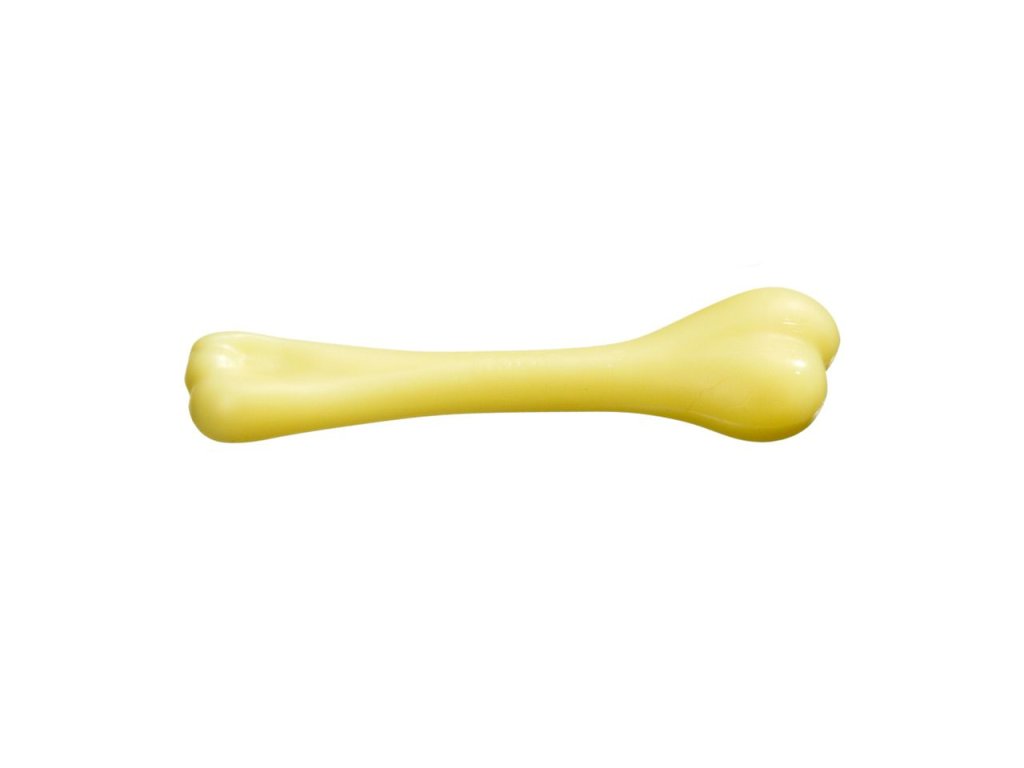 Pevná žvýkací kost vyrobená z odolného nylonu. Kost je vhodná pro zubní péči. Při žvýkání se trvale tvoří rýhy, které odstraňují zubní kámen. Vanilková příchuť, bez alergenů.