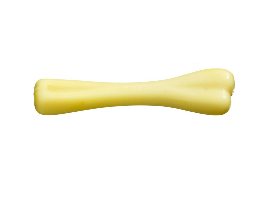 Pevná žvýkací kost vyrobená z odolného nylonu. Kost je vhodná pro zubní péči. Při žvýkání se trvale tvoří rýhy, které odstraňují zubní kámen. Vanilková příchuť, bez alergenů.