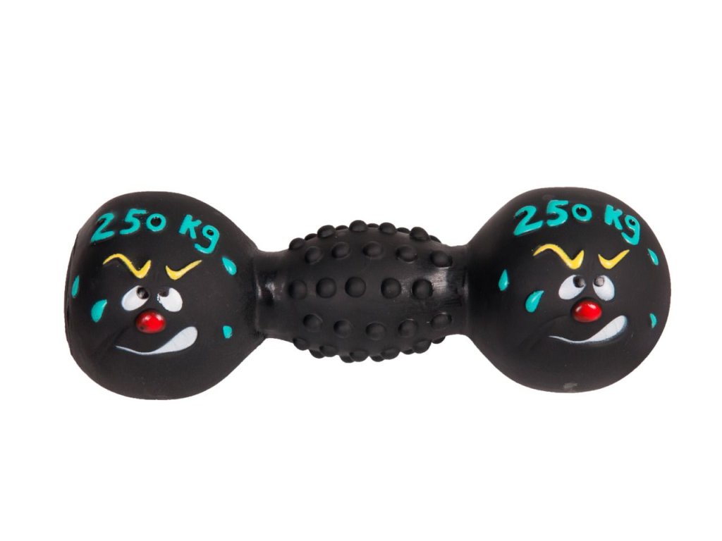 Zábavná gumová hračka v podobě činky pro psa. Po zmáčknutí píská, proto tuto hračku bude Váš pes milovat.