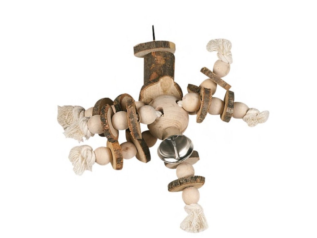 Aby se zajistilo, že se ptáci nebudou v klecích nudit, potřebují různé rozptýlení. Hračky pro ptáky ve formě dřevěných visících provazů jsou vítanou zábavou. Například tato hračka je vyrobena z lan, dřevěných disků a kuliček.