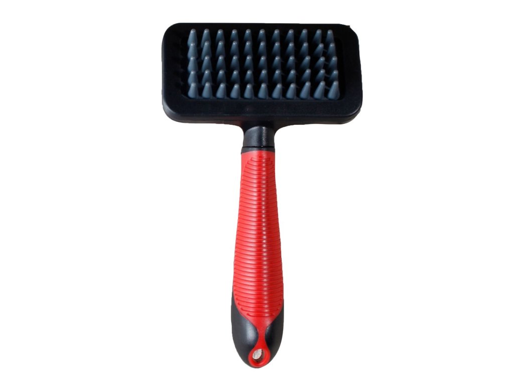 Tento antistatický kartáč podporuje správné prokrvení pokožky. Také odstraňuje odpadlé vlasy, čímž dodává srsti krásný lesk. Velikost 18x10x4,5cm.