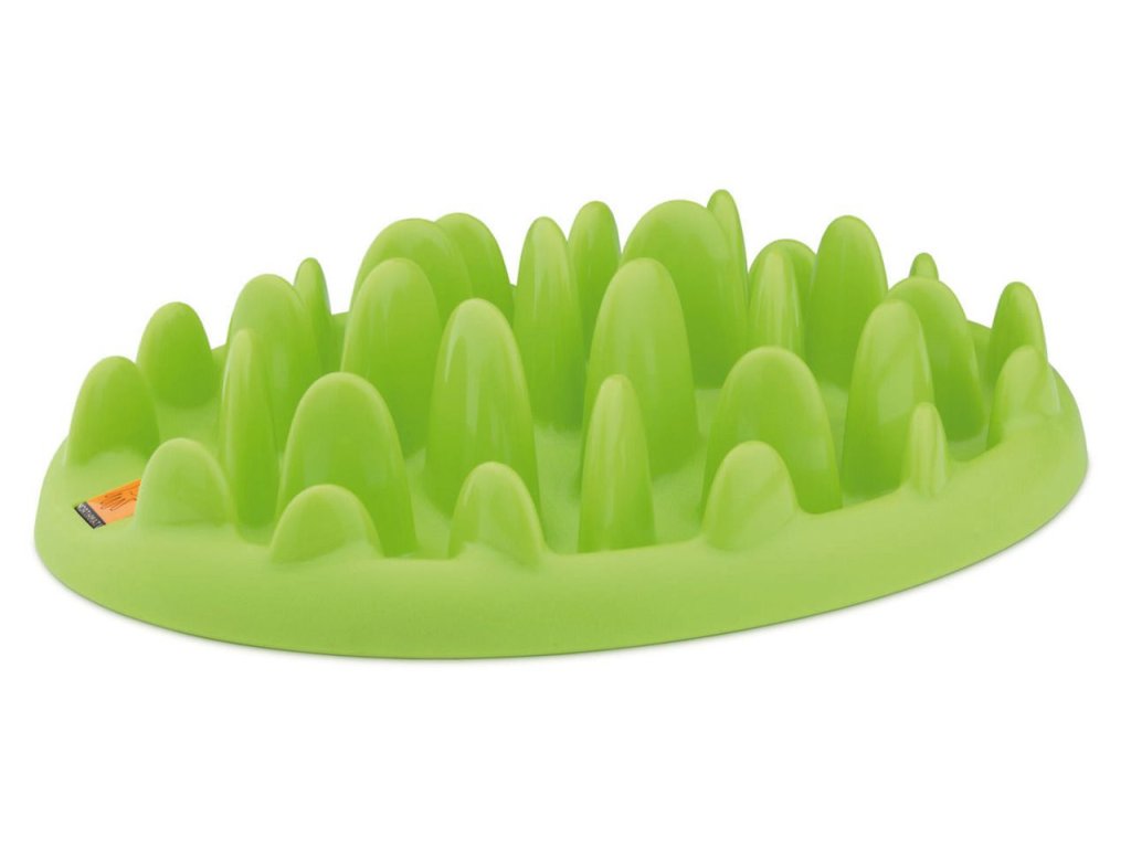 Trčící překážky z misky nutí Vašeho psa jíst pomaleji, protože musí vyzvednout každý blok jeden po druhém. Snižuje riziko kroucení žaludku. Zvyšuje sytost. Určeno pro štěňata. Velikost 29x22,5x7cm.