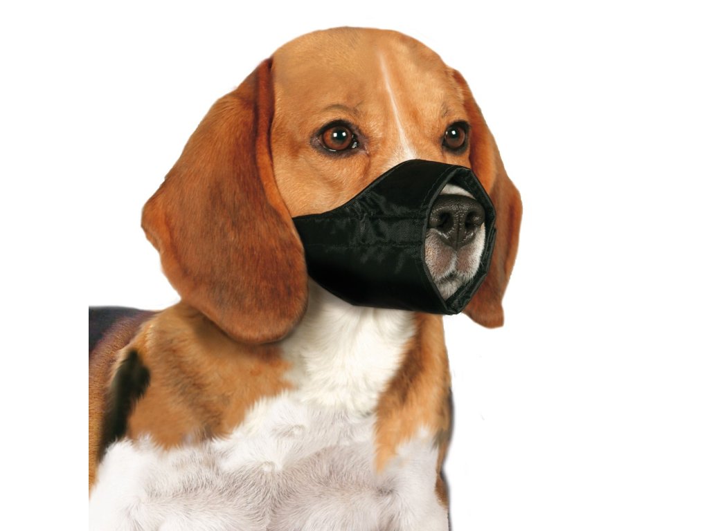 Lehký nylonový náhubek pro psa. Zabraňuje psovi kousat. Velikost M, obvod tlamy 21cm, 53-77 cm za hlavu