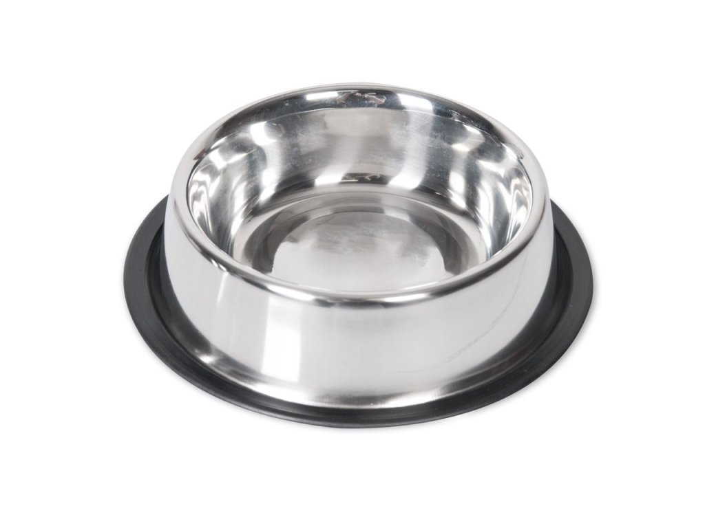 Praktická nerezová miska s gumovým okrajem, která zabrání skluzu po podlaze. Velikost 18cm 900ml