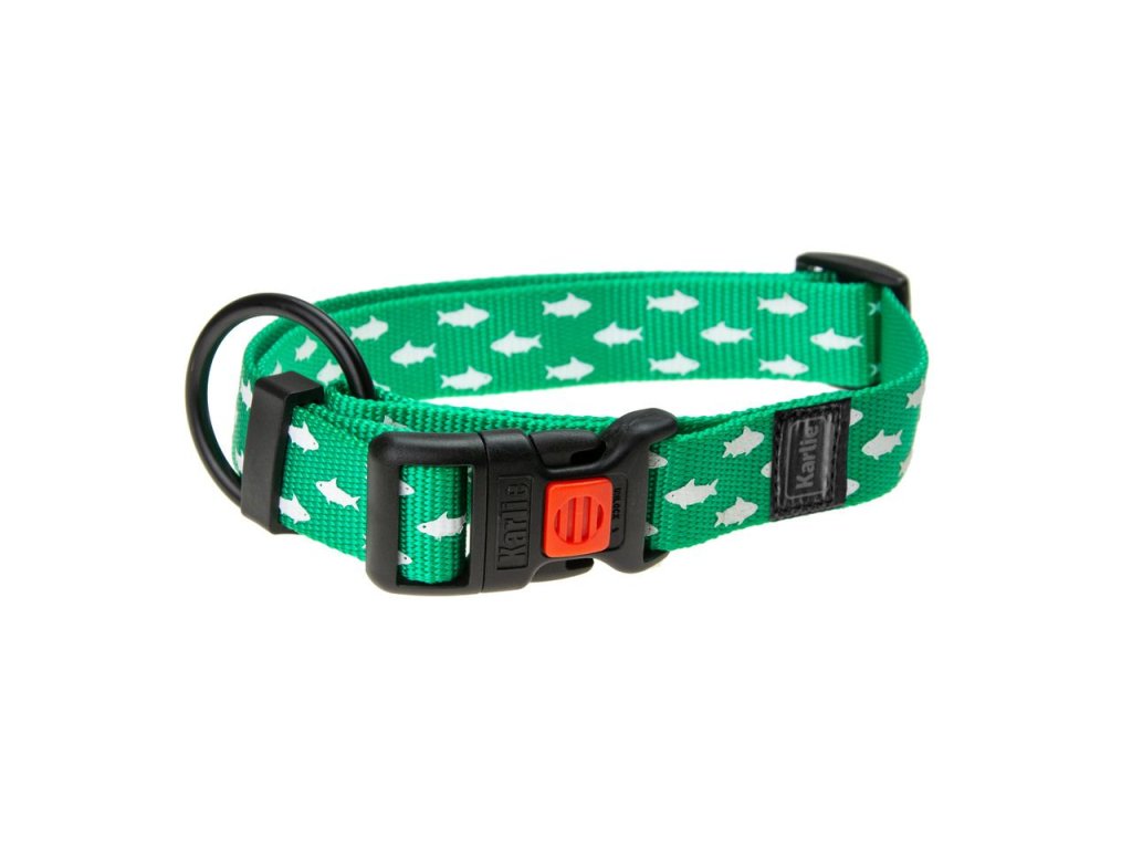 Karlie Obojek ASP Mix&Match zelený motiv Žralok velikost L/XL 45-65cm 25mm