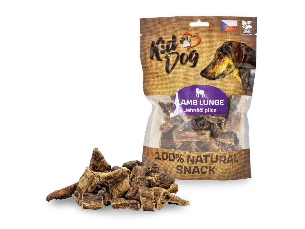 KIDDOG 100% Natural Snack, jehněčí plíce 2-4 cm / 80 g