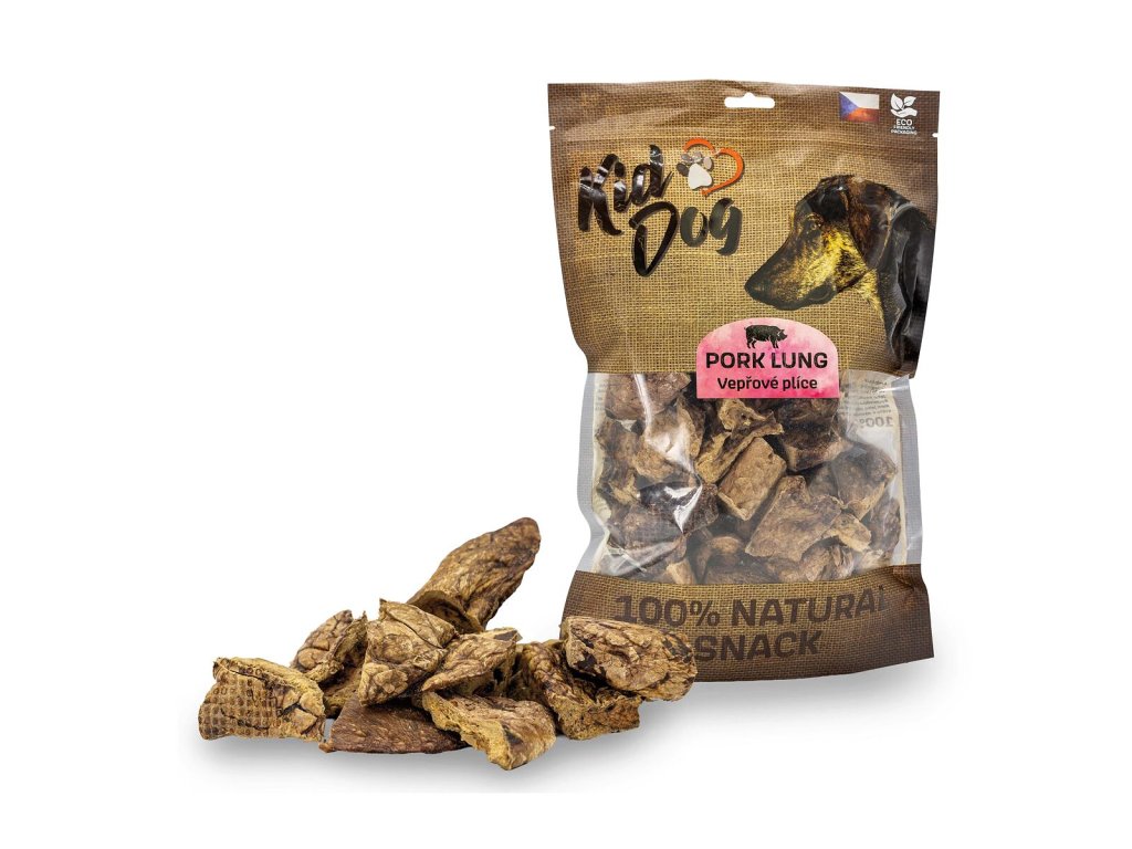 KIDDOG 100% Natural Snack, vepřové plíce 4 - 6 cm / 200 g