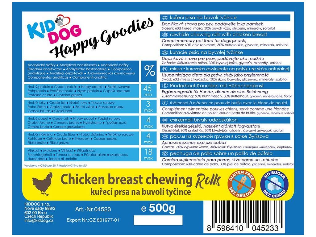 KIDDOG kuřecí prsa (lízátko) na buvolí tyčce 500 g