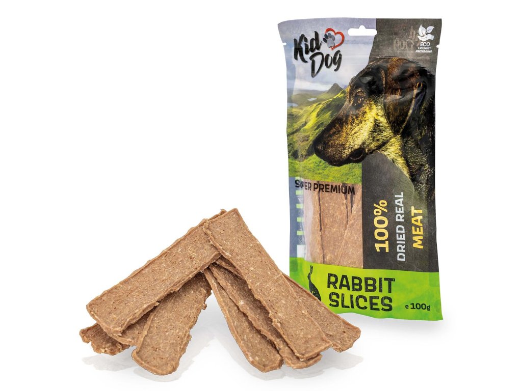 Kiddog Superpremium Snack je monoproteinový šetrně sušený produkt. Králičí maso je dietní a lehce stravitelné s nízkým obsahem tuku ale vysokým obsahem bílkovin. Je také přírodním zdrojem vitamínů B2, B6 a B12. Rovněž obsahuje řadu důležitých aminokyselin ovlivňujících tvorbu a regeneraci buněk. Příznivě působí na imunitní systém. Ideální doplněk stravy pro všechna plemena psů napříč věkovými kategoriemi.