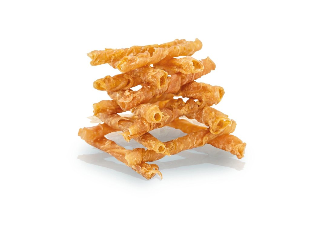 - šetrně sušená kuřecí prsa ve tvaru spirály