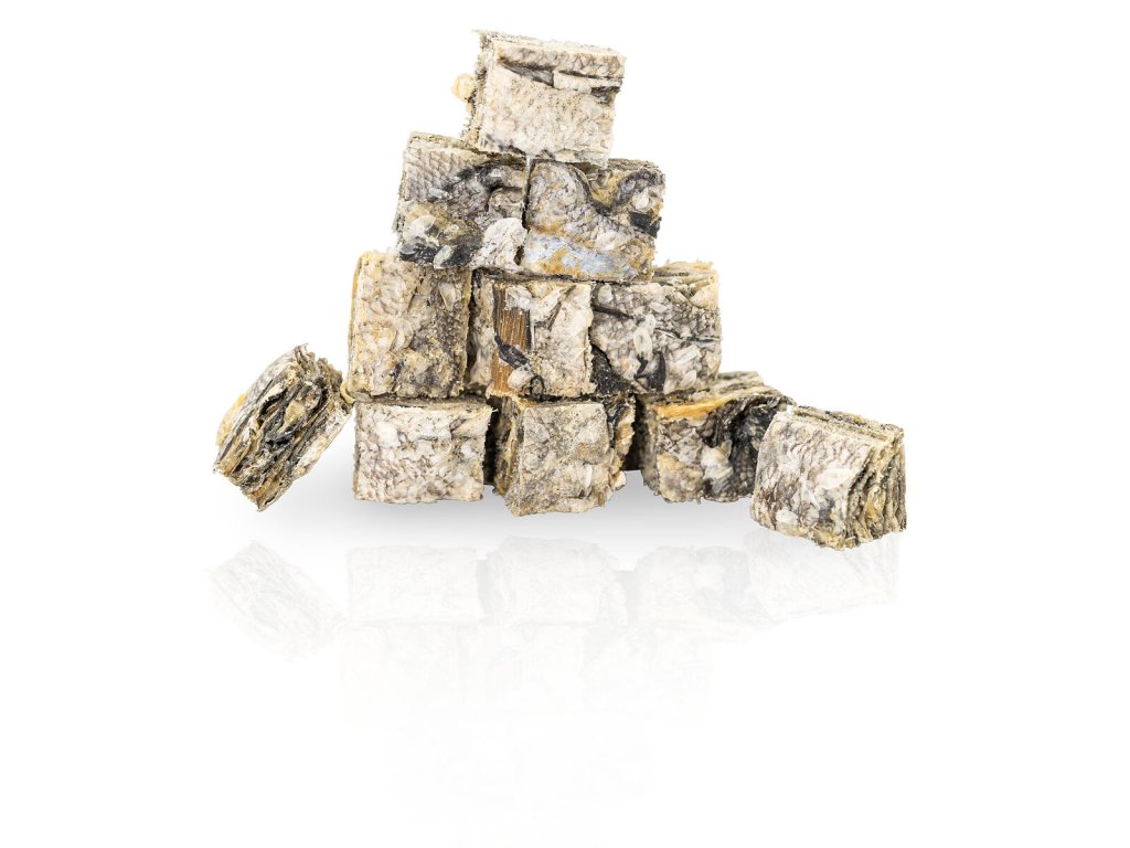 Složení: 100 % rybí kůže z mořské tresky, přírodní Omega 3 a l mastné kyseliny