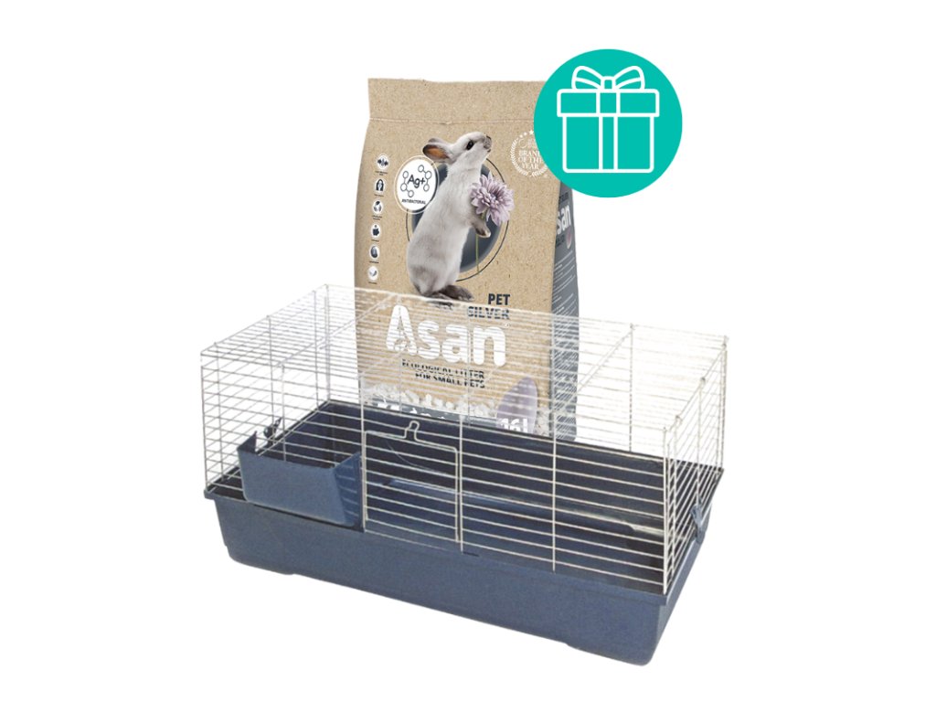 Klec Bunny Bungallow, 100cm, chrom + podestýlka Asan Pet Silver, 16 l