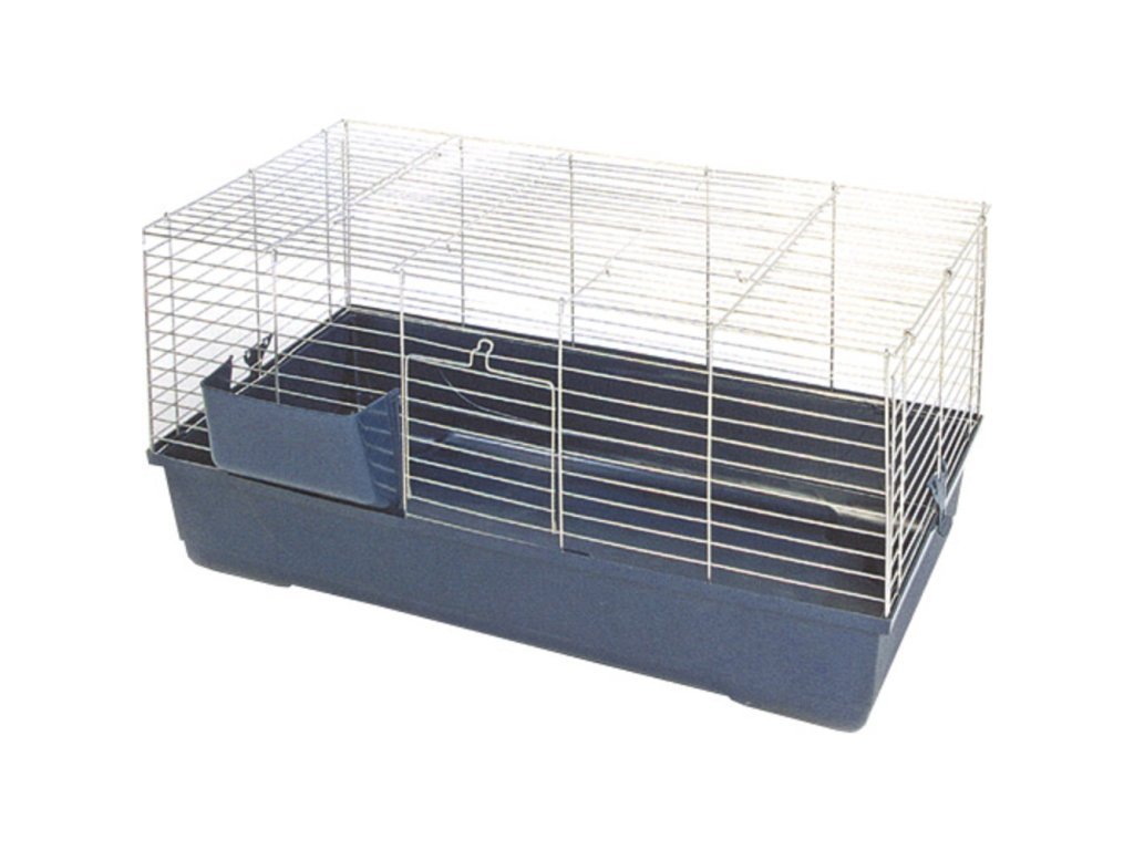 Prostorná klec pro zakrslé králíčky či morčata Bunny Bungallow má výklopné obě boční stěny, přístup shora a z čelní strany. V chromové úpravě.