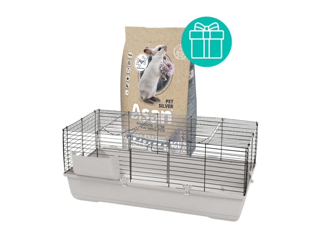 Tommi Klec Bunny Bungallow Grande, 140cm, chrom + podestýlka Asan Pet Pure, 16 l