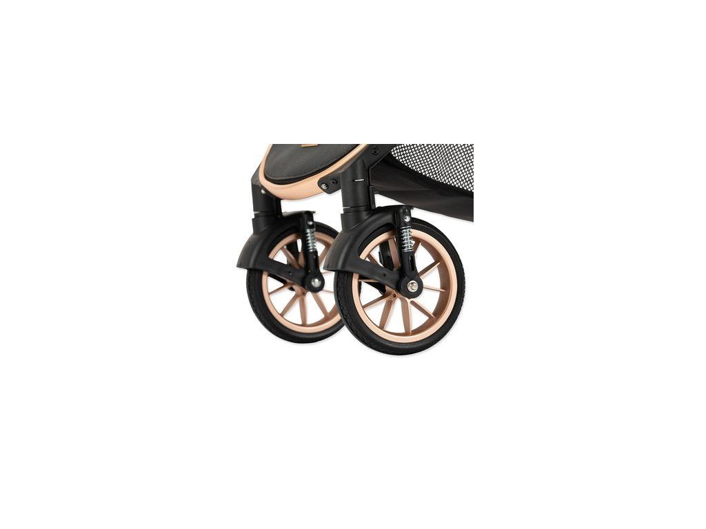 - Bezpečnost na prvním místě: Bezpečnostní brzda zajišťuje, že kočárek zůstane stát pevně na místě, i když zastavíte na svahu nebo nerovném terénu. Zároveň je vybaven odolnými pneumatikami.