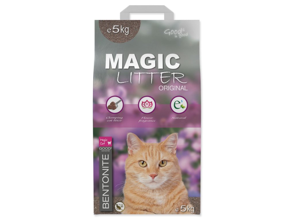 Prémiová řada kočkolitů Magic Litter Original Flowers z prvotřídního jemnozrnného jílu, jež se řadí mezi přírodní zdroje. Stelivo má příjemnou vůni lučního kvítí.