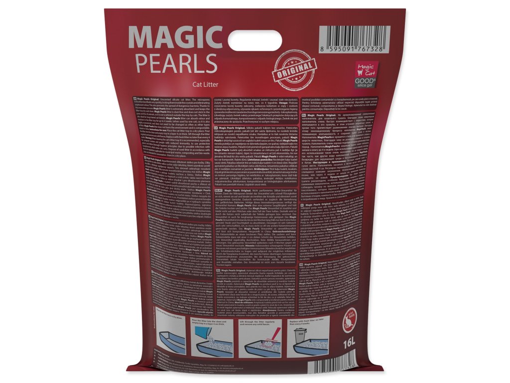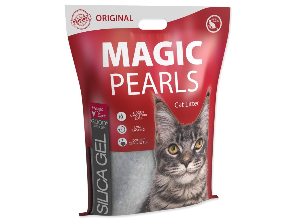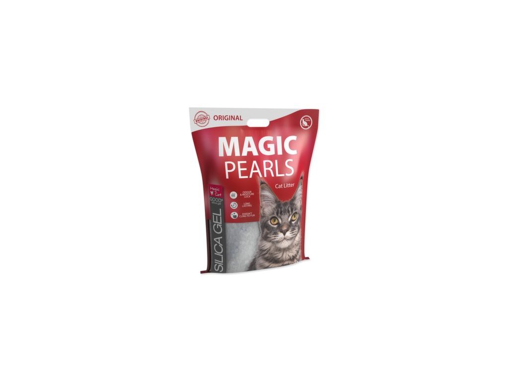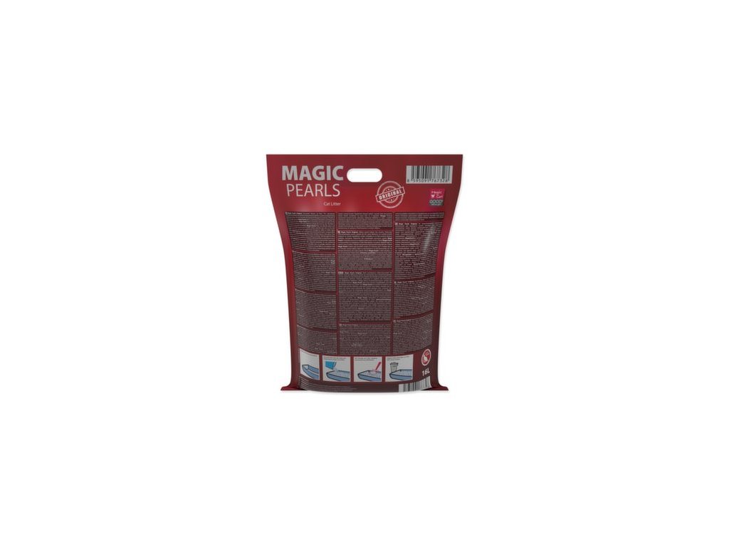 Neparfémované silikátové stelivo pro kočky. Díky mikropórům na sebe stelivo velice rychle váže tekutiny, které uzamkne uvnitř krystalků a eliminuje nepříjemný zápach. Tím zároveň zabraňuje množení nebezpečných bakterií. Díky tomuto inovativnímu procesu má stelivo Magic Pearls extrémní savost a udržuje toaletu suchou a čistou. Stelivo Magic Pearls je bezprašné a neulpívá na tlapkách a srsti zvířat, takže není kočkami vynášeno mimo toaletu. Stelivo je vhodné i pro dlouhosrstá plemena koček. Stelivo Magic Pearls v toaletě vydrží absorbovat pachy a vlhkost až 4 týdny (při použití jednou kočkou), proto je jeho použití také velice ekonomické, není třeba jej měnit tak často jako jiné druhy steliv.