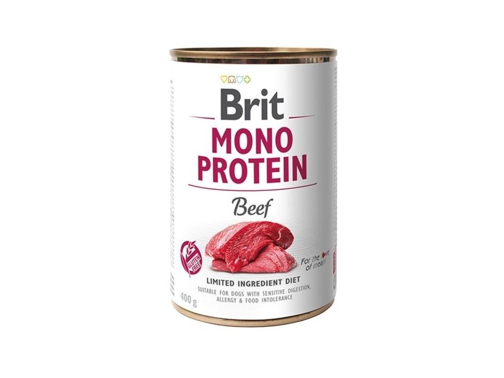 Konzerva Brit Mono Protein BeefIdeální strava pro psy s citlivým zažíváním, alergiemi nebo potravinovou intolerancí. Monoproteinová konzerva Brit Care je řešení, pokud stále pátráte po příčině citlivého zažívání - lze jednoduše vyřadit z jídelníčku. Naopak, pokud je váš pes spokojený s určitým zdrojem bílkovin, u monoproteinové konzervy se nemusíte obávat jiných přísad. Konzerva má příjemně jemnou texturu, a je tak vhodná i pro starší psy s problémovým chrupem, a usnadňuje zažívání. Receptura bez přidaných aromat či barviv, lepku nebo sóji. Zároveň s chutí a vůní, které přilákají i psa od sousedů.
