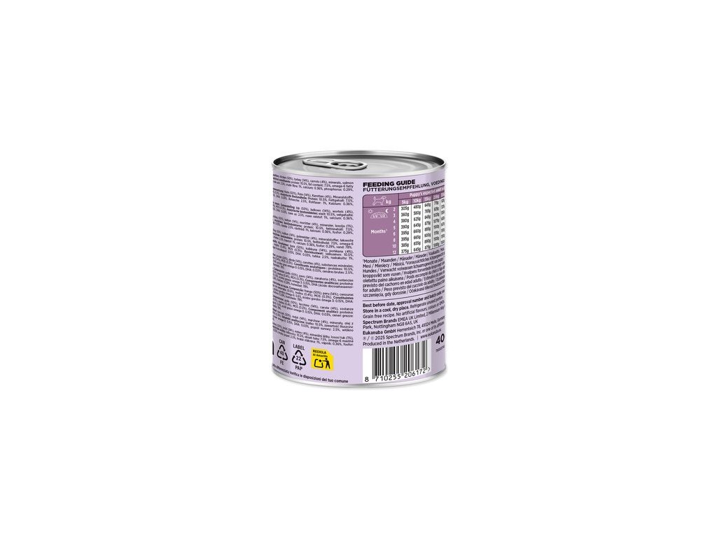 Jedná se o 100% kompletní a vyvážené mokré krmivo. To znamená, že poskytuje všechny základní živiny, které váš pes potřebuje – není nutné žádné další krmivo.
