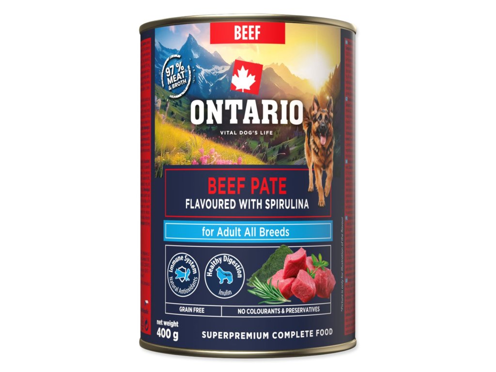Konzerva Ontario Adult hovězí pate s příchutí spiruliny 400g