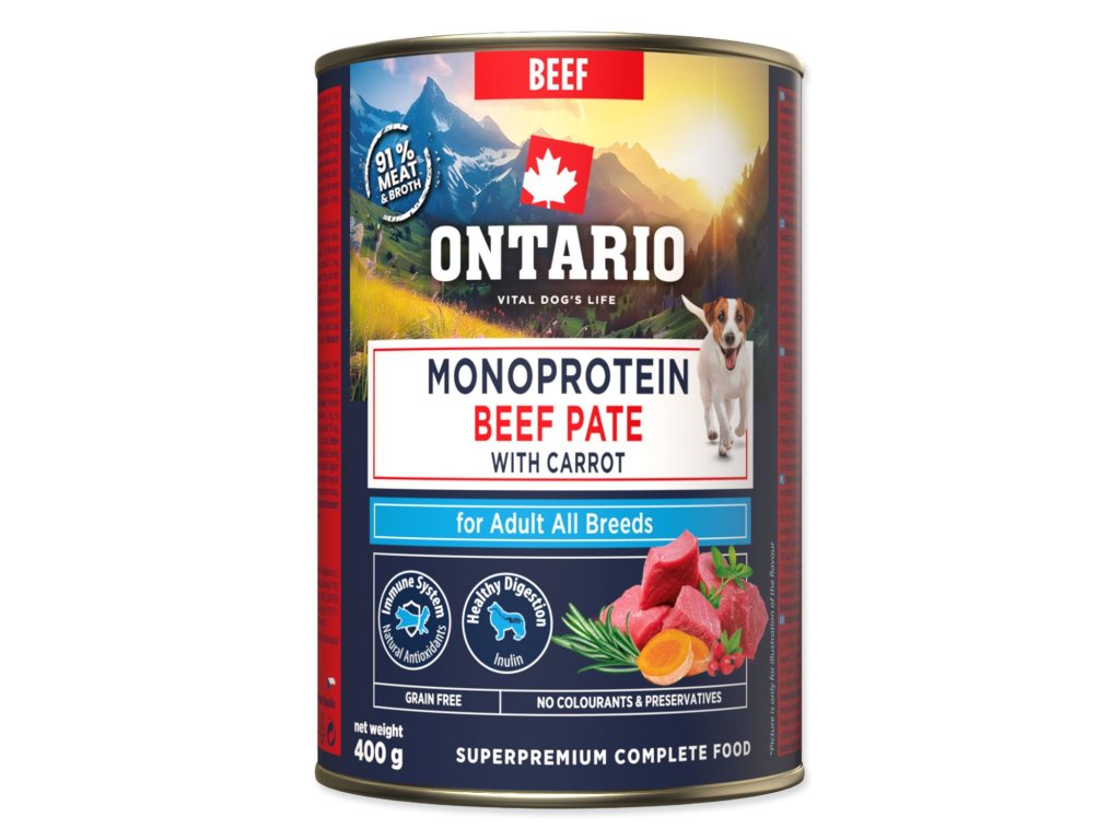 Konzerva Ontario Adult monoprotein hovězí pate s mrkví 400g
