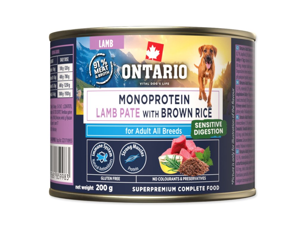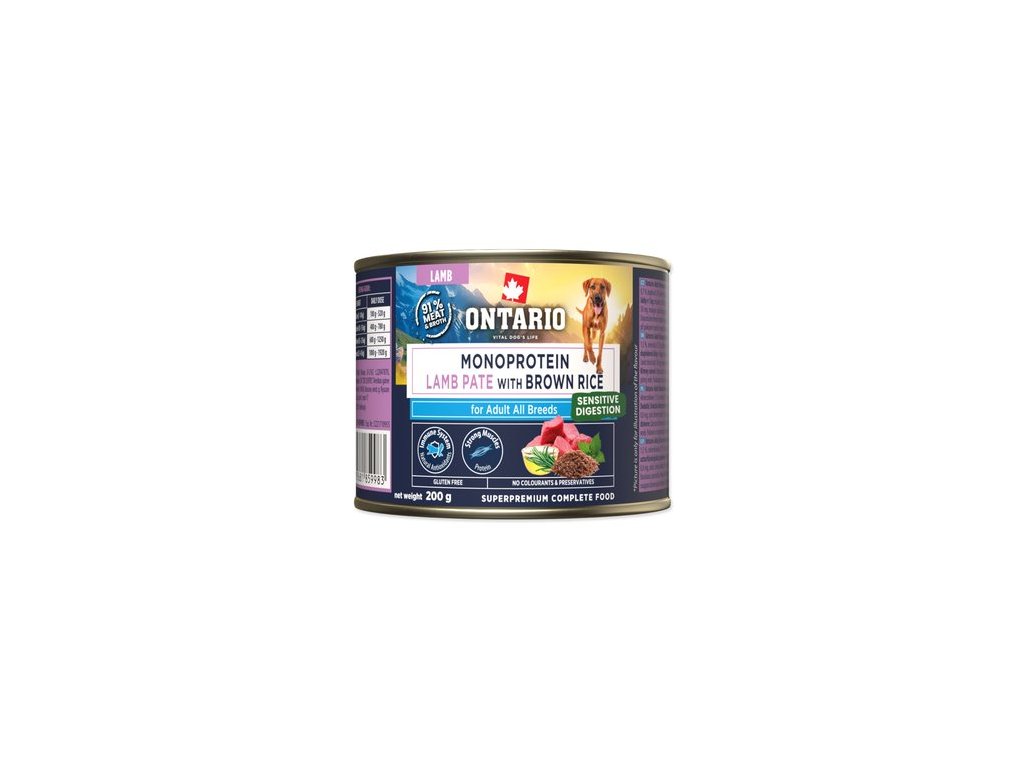 Konzerva Ontario Adult monoprotein jehněčí pate s hnědou rýží 200g