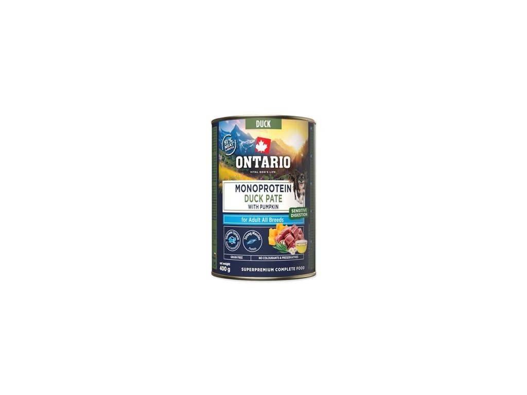 Konzerva Ontario Adult monoprotein kachní pate s dýní 400g