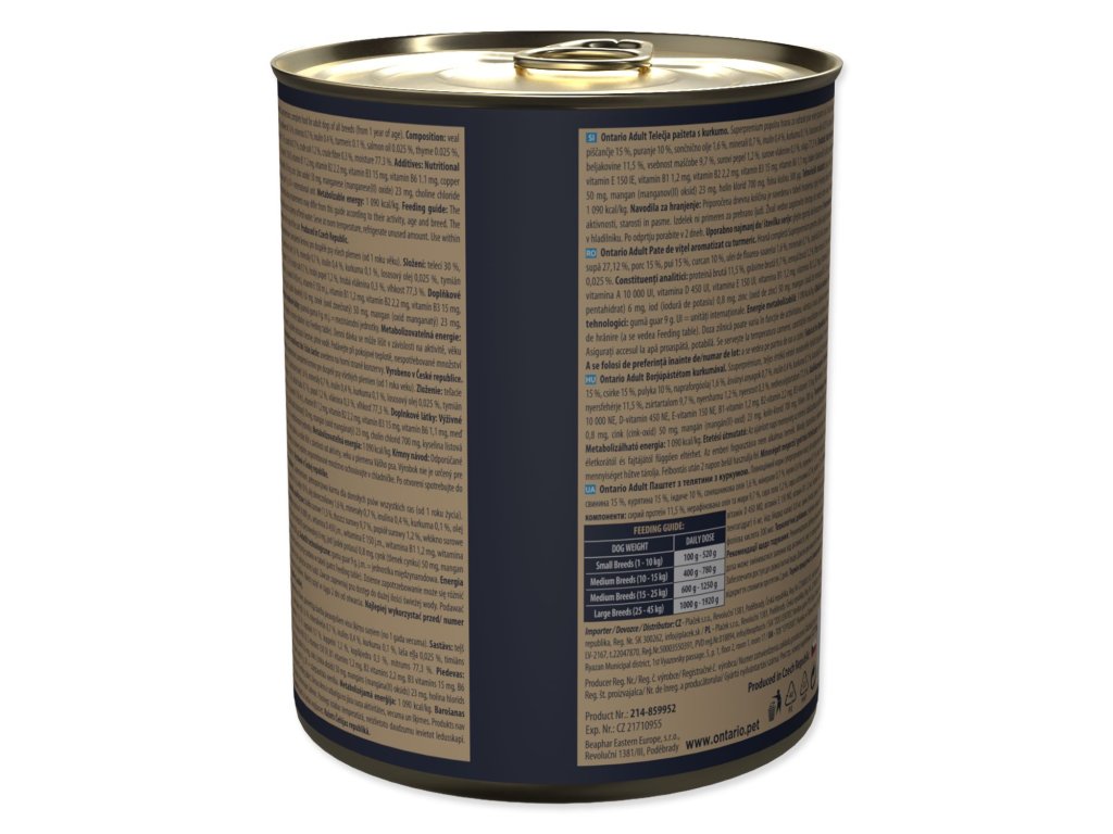 Konzerva Ontario Adult telecí pate s příchutí kurkumy 800g