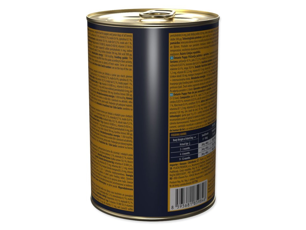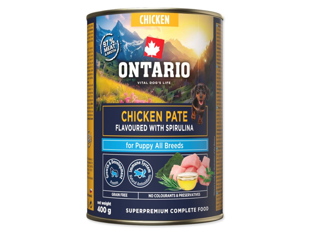Konzerva Ontario Puppy kuřecí pate s příchutí spiruliny 400g