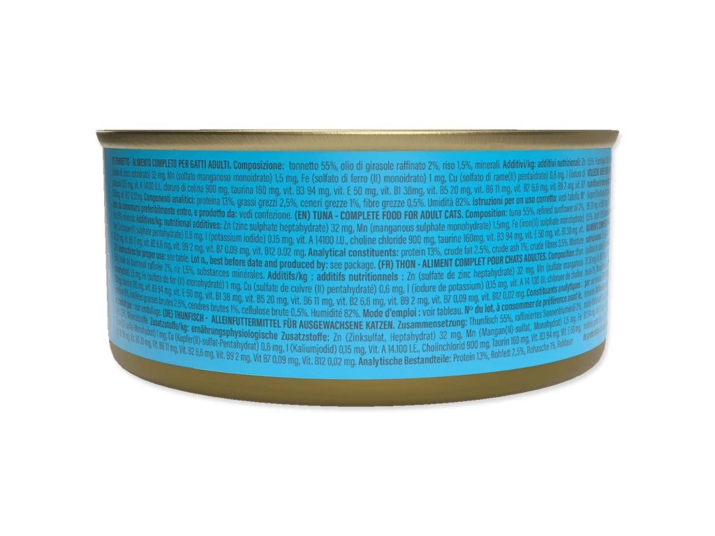 Konzerva s masem z tuňáka. Doplňkové krmivo pro dospělé kočky.