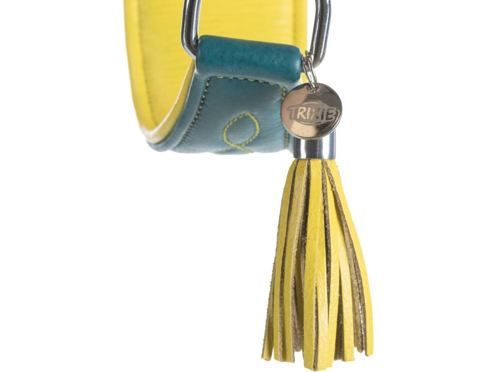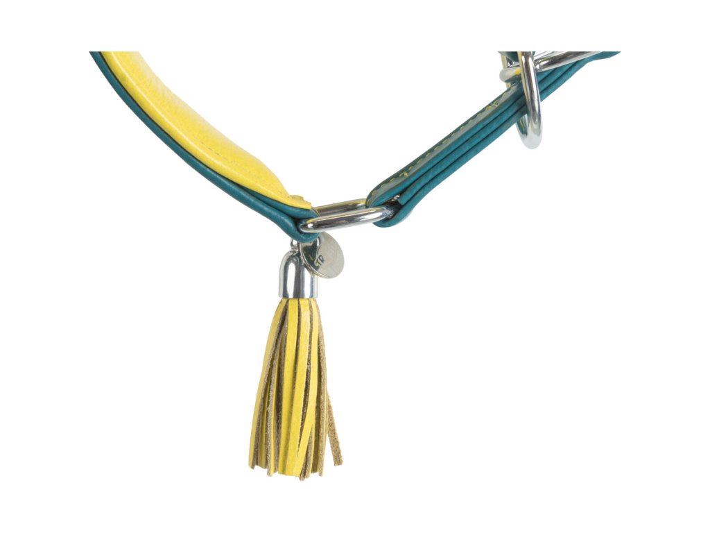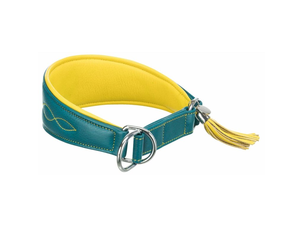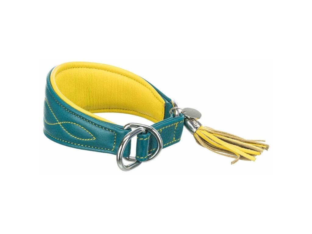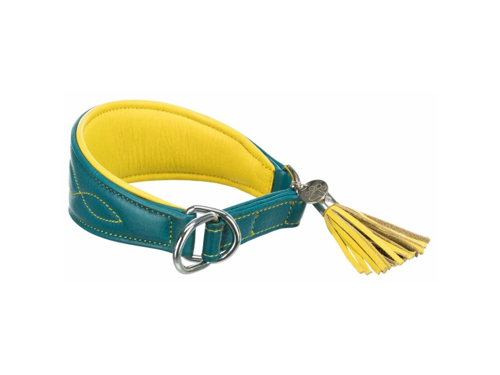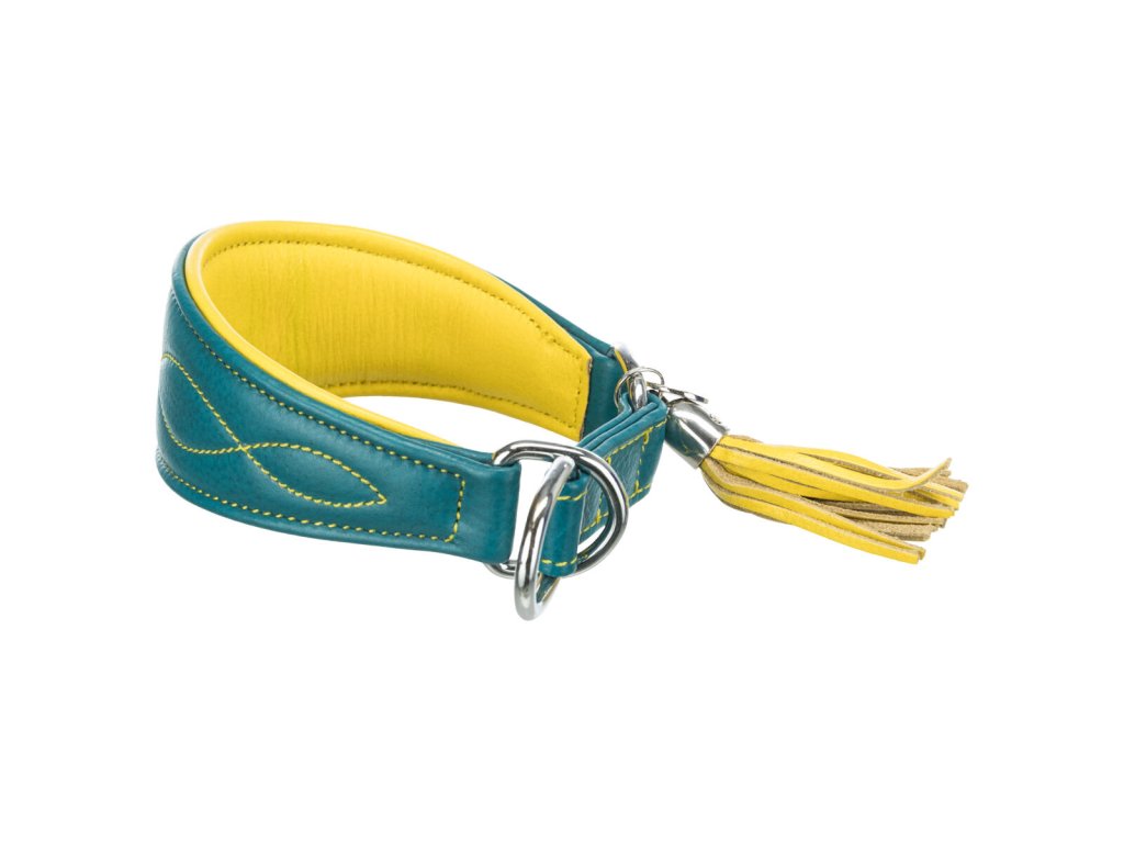 Kožený obojek ACTIVE Comfort pro chrty - petrolejová/žlutá