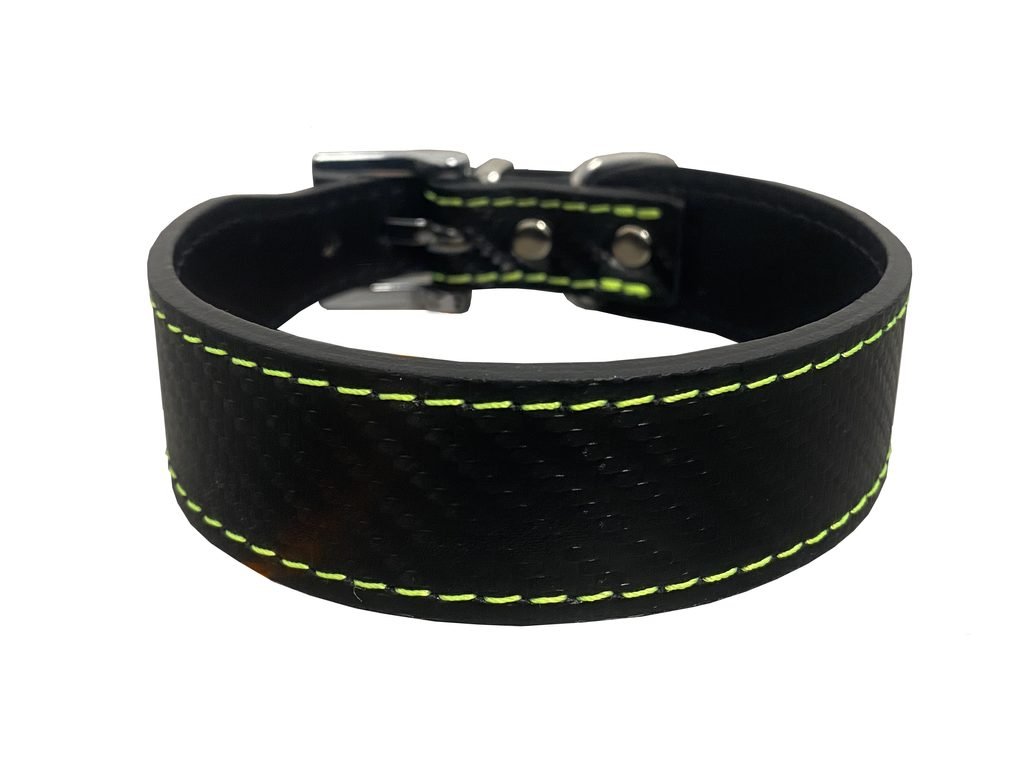 Kontrastní neonové prošití, které ostře vystupuje na tmavém podkladu carbonové kůže, dodává obojku moderní a energický vzhled. Tento detail z něj dělá skutečně stylový doplněk, který si všimne každý na ulici.