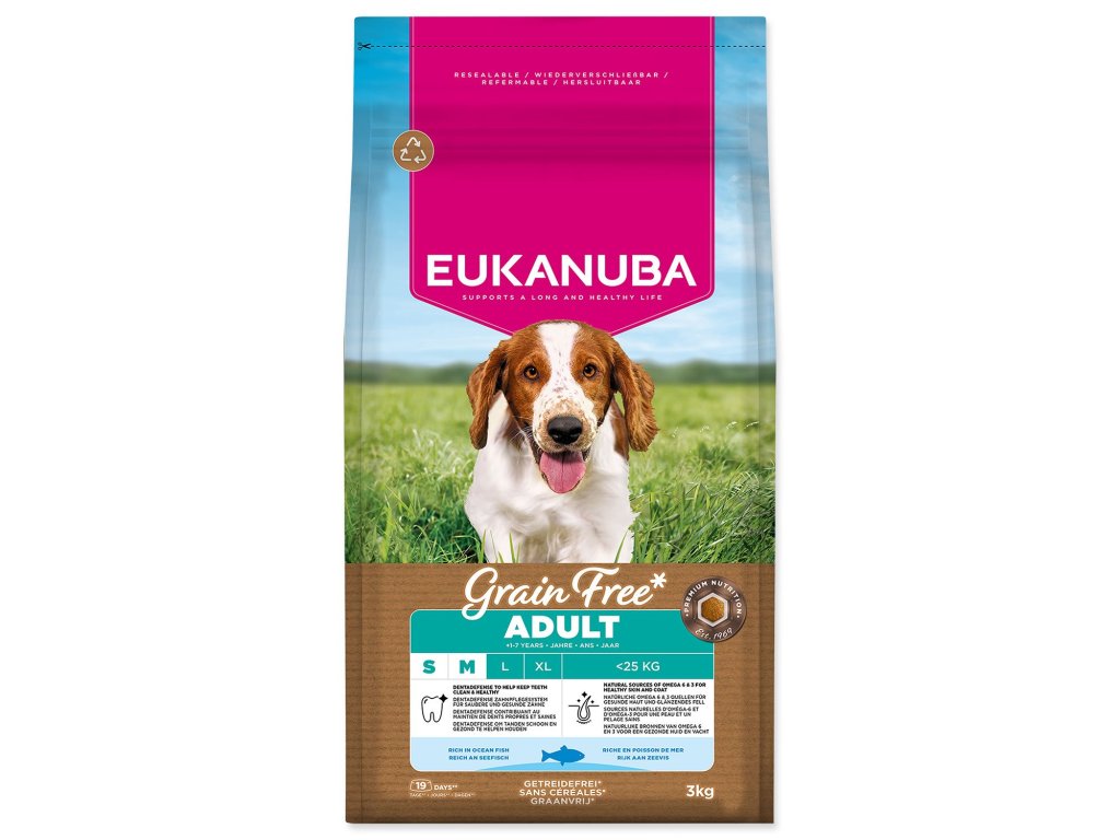 Krmivo EUKANUBA Grain Free Adult Small & Medium rich in ocean fish 3kg