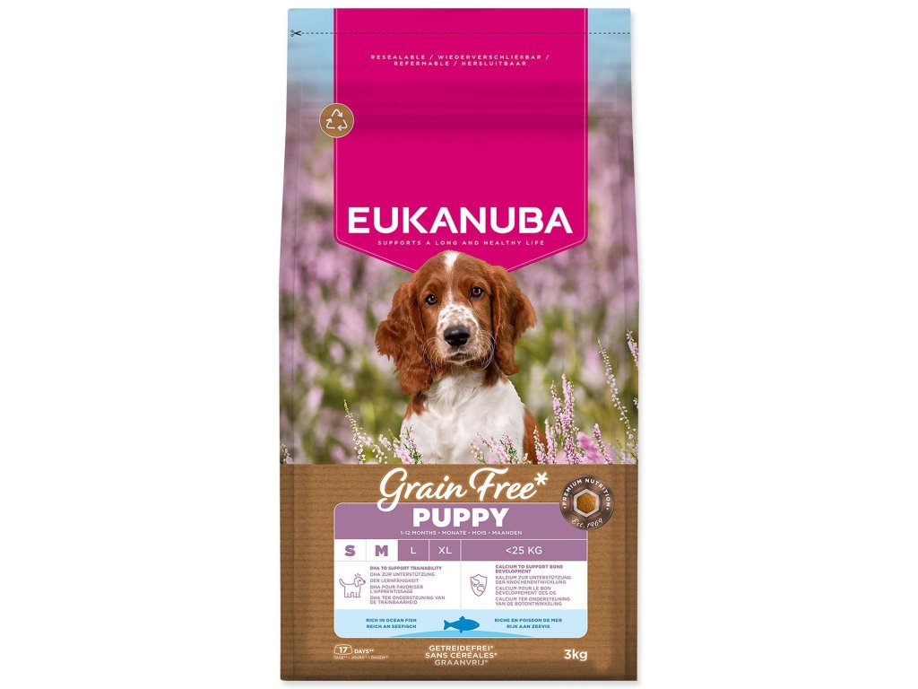 Krmivo EUKANUBA Grain Free Puppy Small & Medium rich in ocean fish 3kg