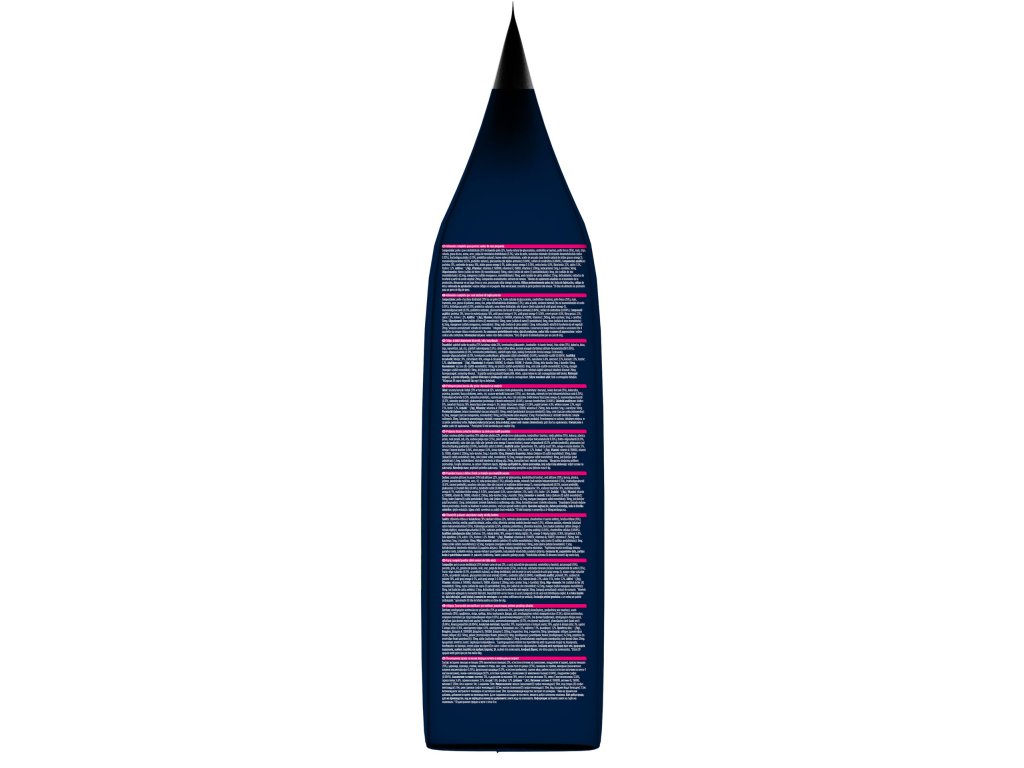 Analytické složky: | Bílkoviny 31 %, obsah tuku 18 %, omega-6 mastné kyseliny 3 %, omega-3 mastné kyseliny 0,36 %, hrubý popel 6,8 %, hrubá vláknina 2,1 %, vápník 1,5 %, fosfor 1,2 %. |