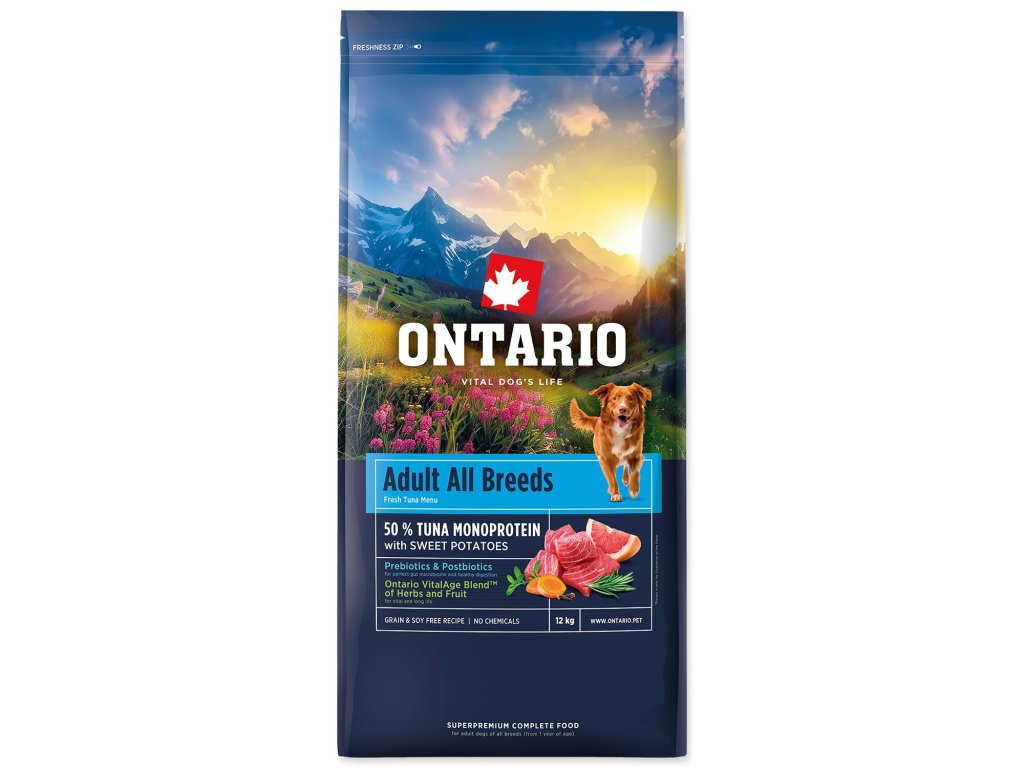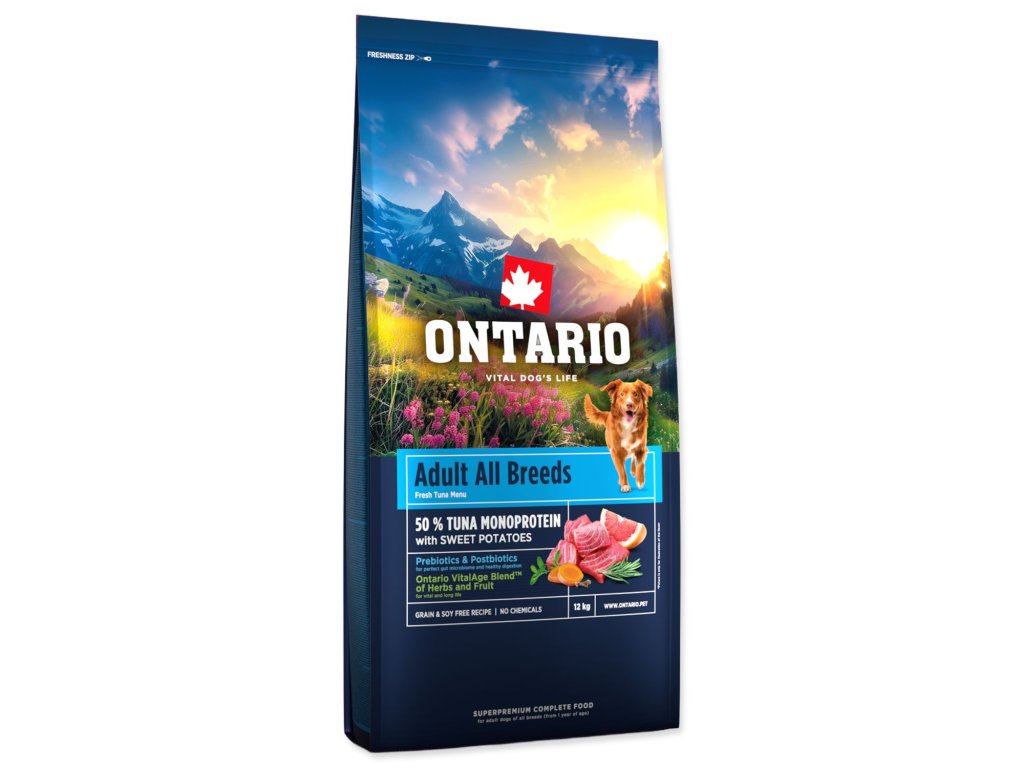 Krmivo Ontario Adult All Breeds Monoprotein Tuna & Sweet Potatoes 12kg