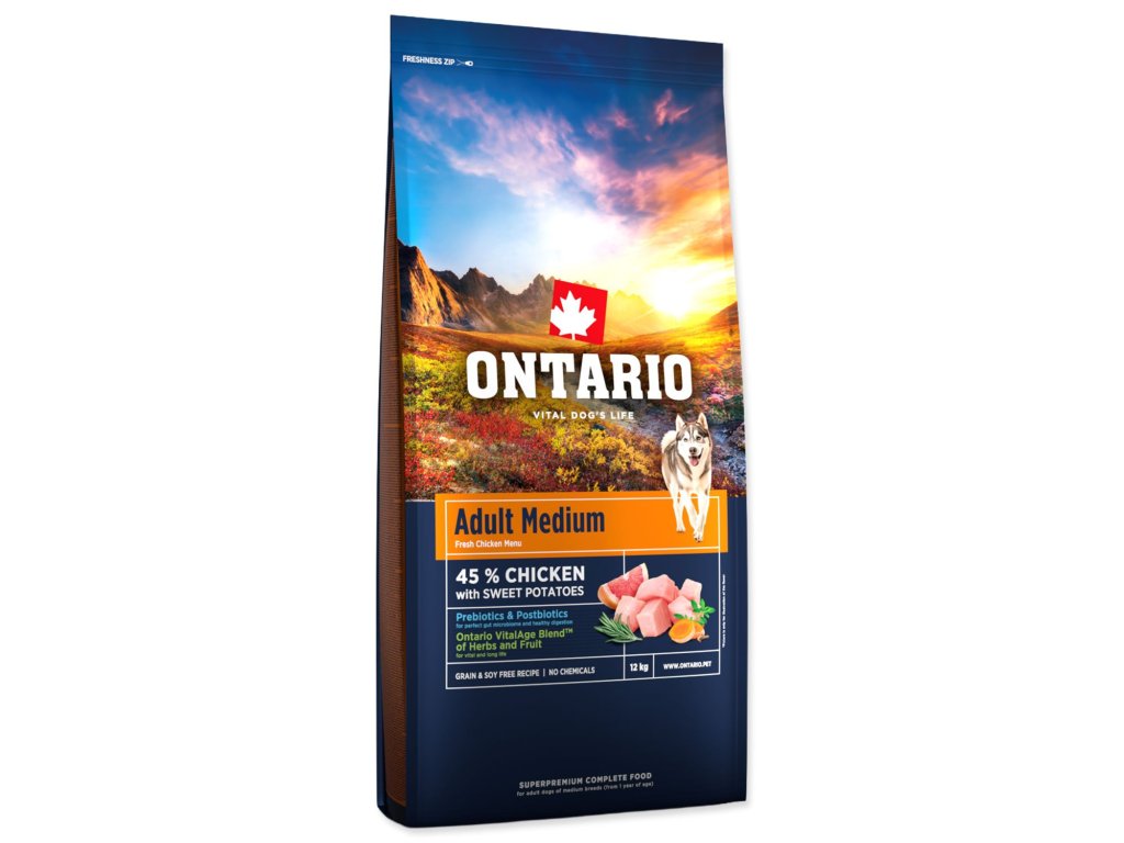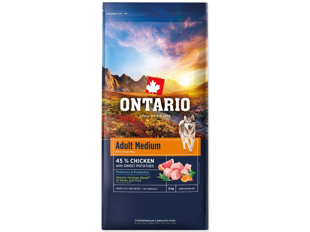 Krmivo Ontario Adult Medium Chicken & Sweet Potatoes 12kg