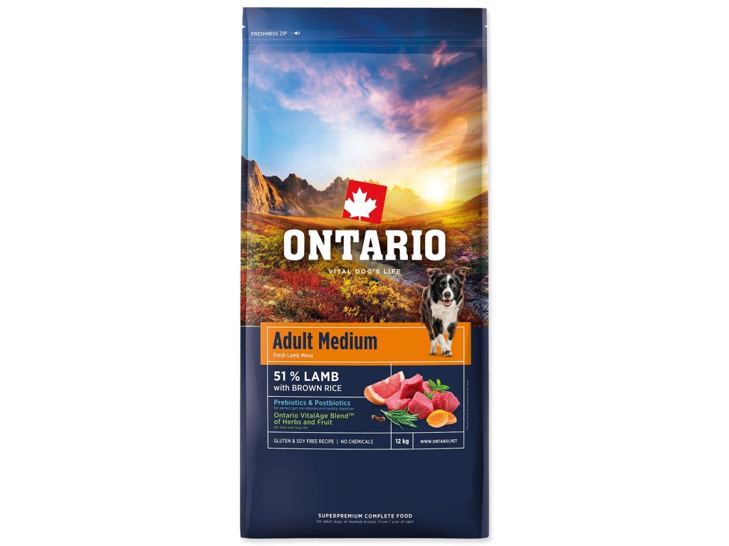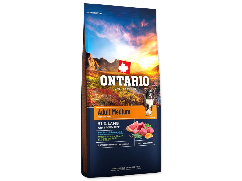 Krmivo Ontario Adult Medium Lamb & Brown Rice 12kg