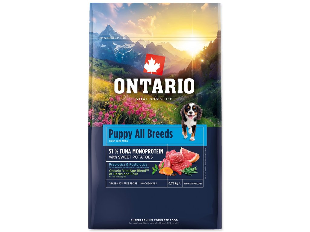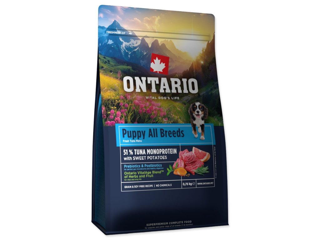 Krmivo Ontario Puppy & Junior All Breeds Monoprotein Tuna & Sweet Potatoes 0,75kg