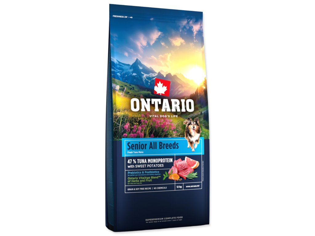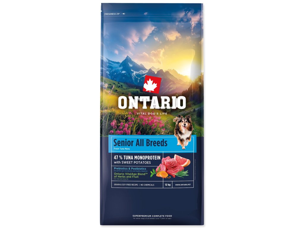 Krmivo Ontario Senior All Breeds Monoprotein Tuna & Sweet Potatoes 12kg