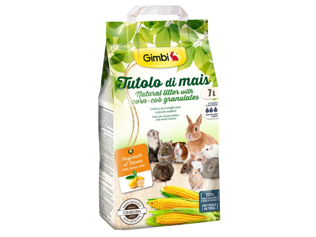 Kukuřičná podestýlka GimbiKvalitní šetrná kukuřičná podestýlka je určená kočkám, hlodavcům, plazům i ptactvu. Jedná se o přírodní rostlinný výrobek, vyrobený ze sušených kukuřičných klasů, který neohrožuje životní prostředí. Podestýlka je savá, neprašná, a tvrdá. Objem: 7 l.