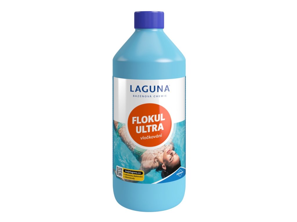 Laguna flokul ultra. Přípravek se používá k odstranění zákalu vody vyvločkováním nečistot.